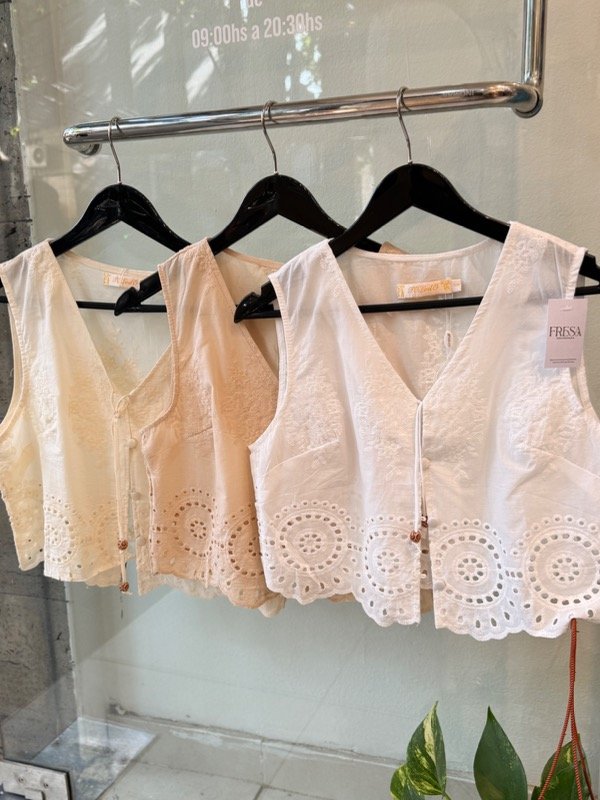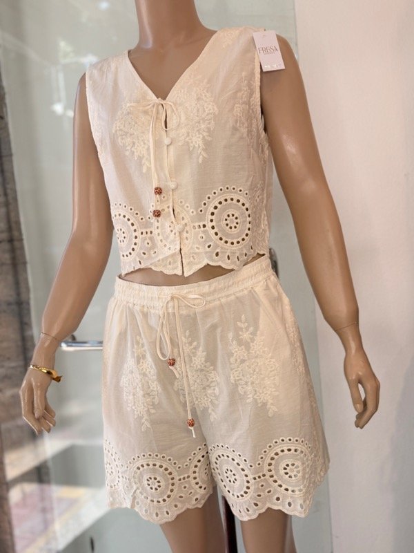 CONJUNTO BRODERIE , CHALECO CON SHORT , súper fresquito , por talles.