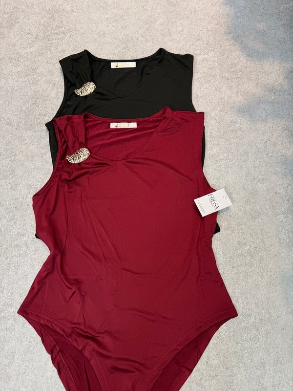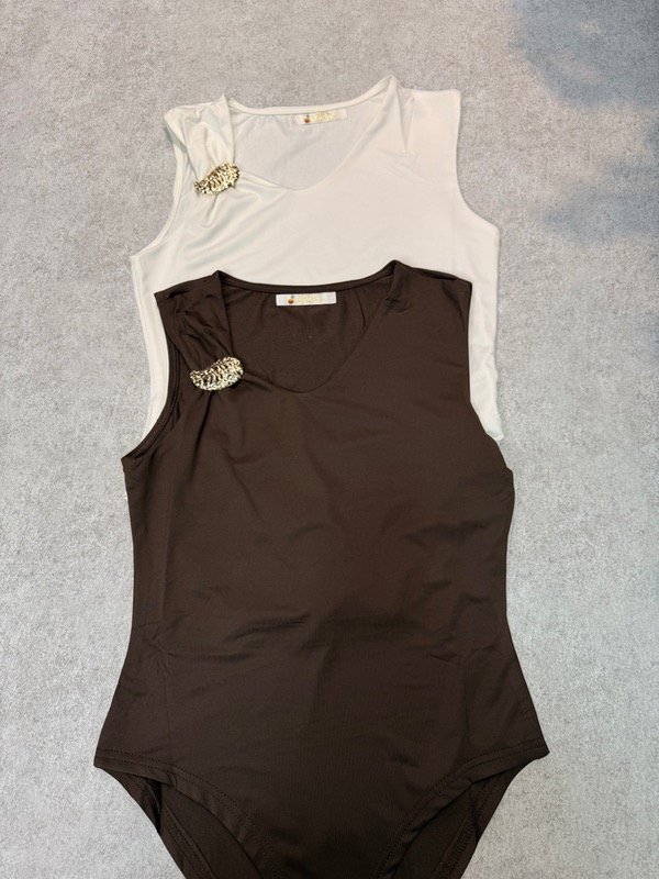 BODY BÁSICO CON APLIQUE DORADO , elastizado con broche .