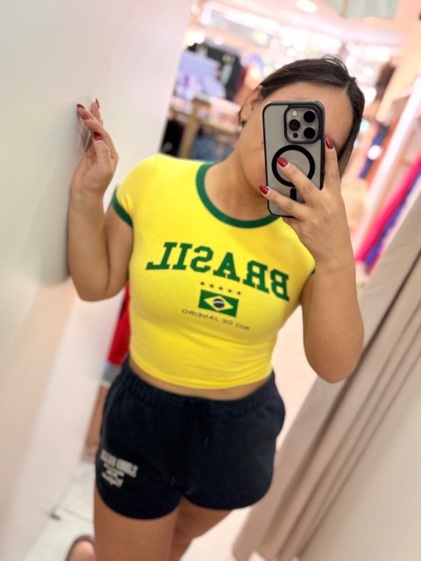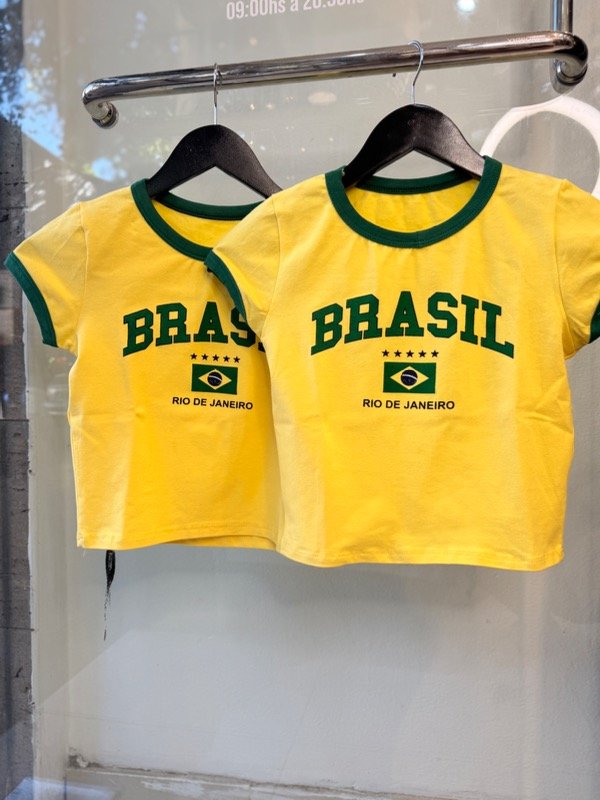 REMERA BRASIL , ELASTIZADO , Cede hasta talle 3 , Talle único , algodón.