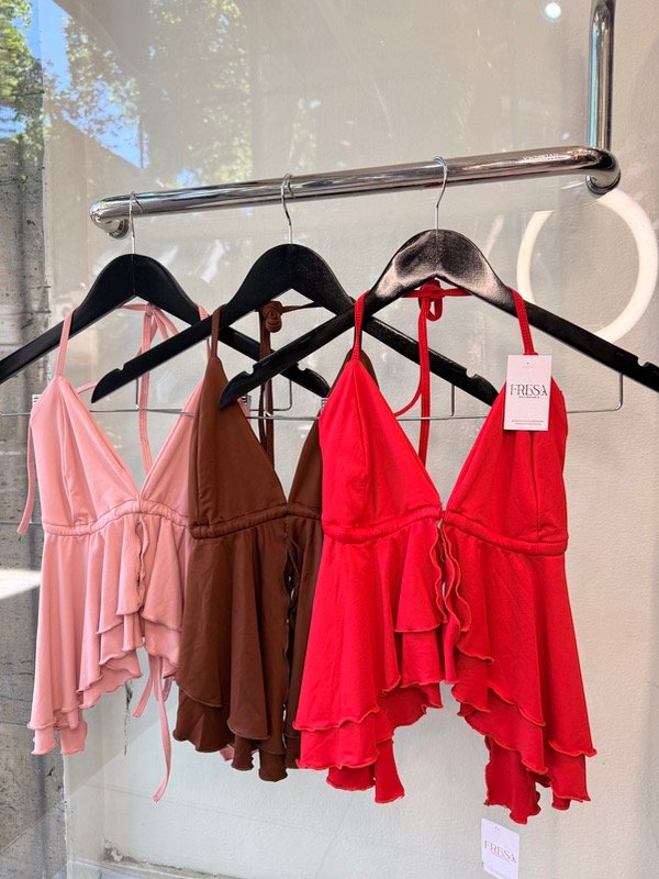 TOP CON CAPAS , talle único ,tazas pequeñas 90/95 , la parte de atrás con son tiras por ende es regulable.